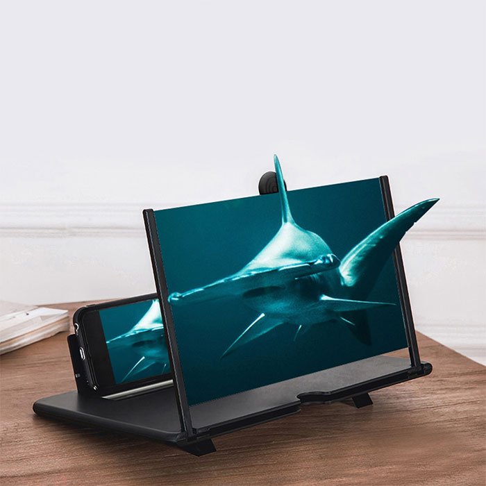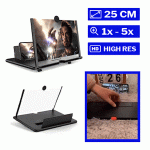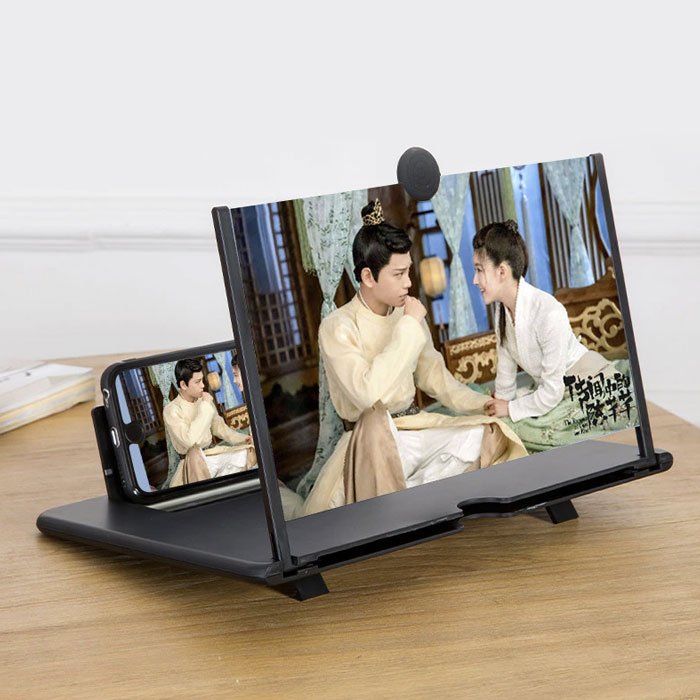 Lupa de 9,8 inci pentru ecranului telefonului mobil utilizează tehnologia optică fizică pentru a proiecta imagini, clipuri video și alte fișiere de pe telefoanele mobile. Lupa amplifică acțiunea de pe telefon pe lentilă de la 3 până la 5 ori.