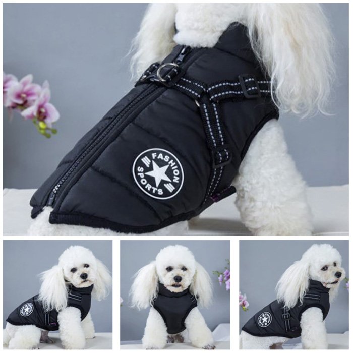 Haina pentru caine este confectionata din material impermeabil, este bine rezistenta la uzura si are un design modern. Partea interioară este realizată din material fleece compozit, este caldă și confortabilă. Este rezistent la vant, deoarece are si guler contractabil si previne eficient intrarea aerului rece.