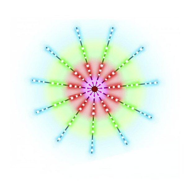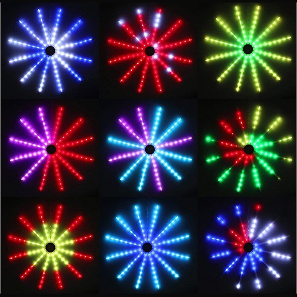 Modelul de artificii este format din 11 benzi scurte și o bandă lungă, după care culorile se schimbă. Există până la 195 de lumini LED colorate pe aceste 11 benzi care răspund la ritmul muzicii și al sunetului. De asemenea, puteți alege singur muzica prin aplicație și telecomandă, puteți regla până la 16 milioane de culori și puteți seta un temporizator după care clipirea se va opri.