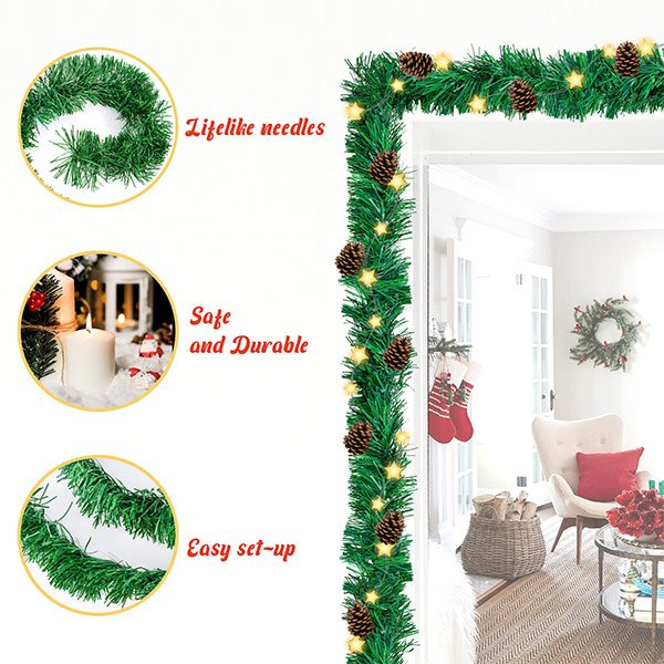 Datorită construcției sale durabile și a frunzișului viu colorat și rezistent la decolorare, guirlanda noastră de brad pentru Crăciun va încununa casa dvs. pe toată durata sezonului de sărbători și pentru mulți ani înainte.