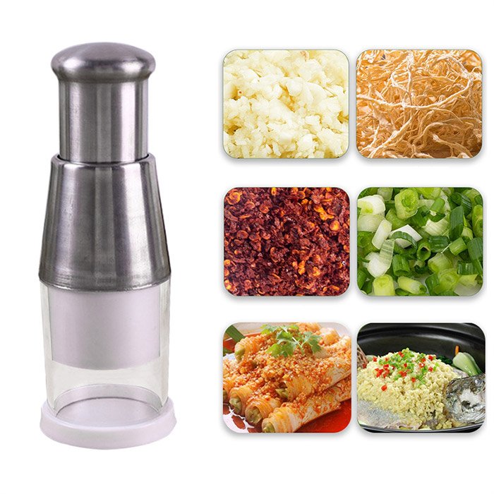 Puteți procesa o varietate de alimente diferite cu el. Spune la revedere tăierii cepei și rupturii din ochi, este potrivit pentru tăierea tuturor legumelor, nucilor, fructelor, condimentelor și multe altele. Este pur și simplu un instrument de bucătărie indispensabil care economisește multă muncă. Este nevoie doar de câteva apăsări pe mânerul felierii și mâncarea ta va fi tocată în câteva secunde!