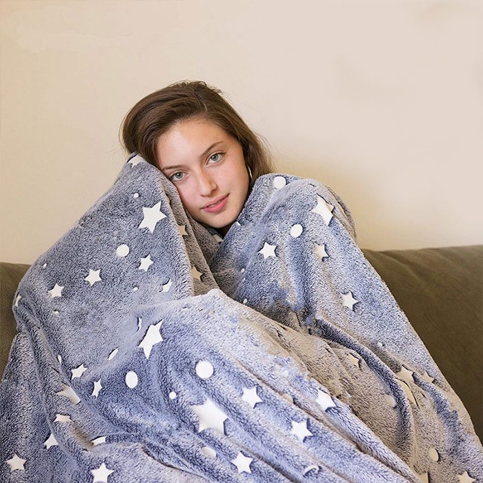 Pătura emite o lumină frumoasă noaptea, tot ce aveți nevoie este să o aveți la lumina zilei în timpul zilei și începe să strălucească noaptea. Este fabricat din cele mai bune materiale care sunt prietenoase cu pielea, calde și oferă siguranță copilului.