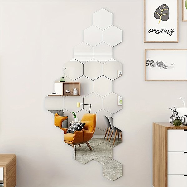 Autocolantele sunt realizate din material reflectorizant de înaltă calitate, care imită aspectul unei oglinzi adevărate. Fiecare autocolant are o formă de hexagon, care adaugă o notă modernă și modernă pereților tăi.