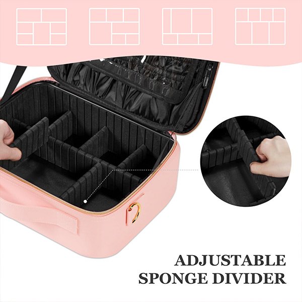 Cutia noastră pentru machiaj în călătorie cu oglindă este fabricată din materiale de înaltă calitate și dispune de un sistem de închidere sigur, asigurând protecția produselor dvs. de frumusețe în timpul călătoriei.