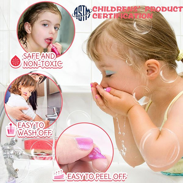Kitul nostru de machiaj pentru copii este realizat din ingrediente non-toxice și este sigur pentru pielea sensibilă a copiilor.