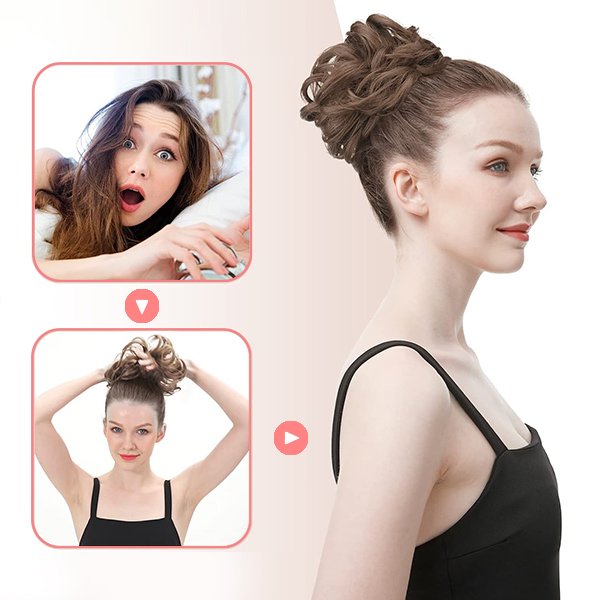 Fabricate din fibre sintetice premium selectate, elasticele de păr sunt moi, rezistente la căldură și lavabile. Cocul arată și se simte aproape ca părul uman real, cu o textură mată, fără strălucire falsă, care se îmbină bine cu părul tău. După spălare, întindeți-l ușor, lăsați-l într-un loc aerisit să se usuce în mod natural, apoi folosiți-vă degetele sau pieptene pentru a-l modela. Pentru a asigura un aspect natural după spălare, nu este recomandat un uscător de păr.
