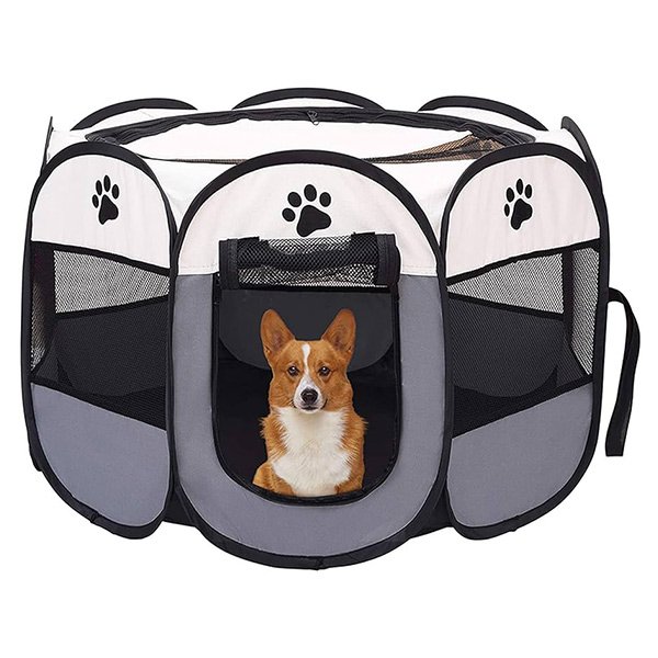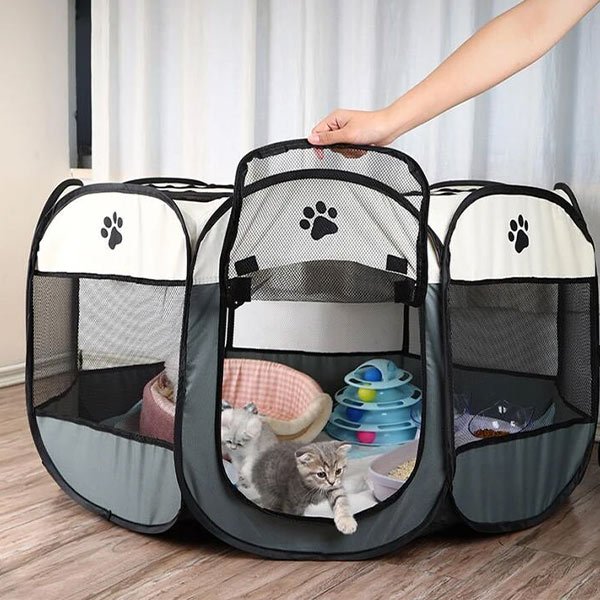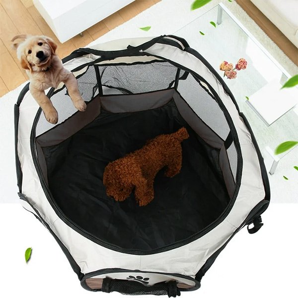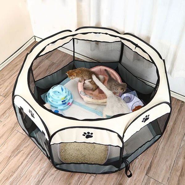 Dotat cu o ușă cu fermoar și ferestre din plasă respirabilă, Gardul nostru oferă ventilație, vizibilitate și un mediu confortabil pentru animalul tău, promovând starea lor de bine.