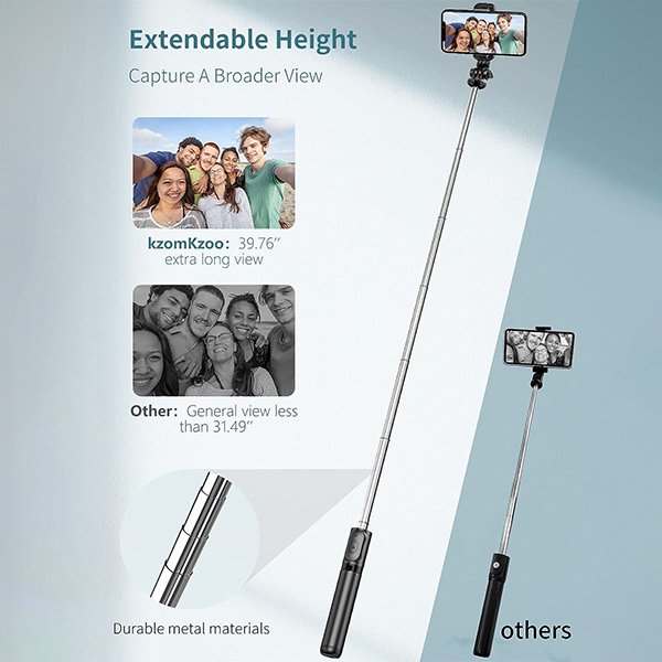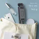 Datorita dimensiunilor sale mici si usor, acest stick selfie poate fi purtat in aproape orice geanta sau rucsac si poate fi luat oriunde – este un companion excelent pentru calatorii, viata de zi cu zi si activitati in aer liber. Cu finisaje rafinate și design ergonomic al mânerului, este o alegere de cadou ideală pentru cei dragi.