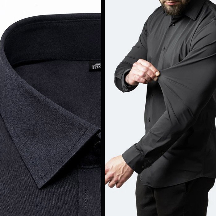 Materialul este confortabil și respirabil. Este conceput pentru a elimina umezeala de pe corp, astfel încât să se simtă proaspăt și răcoros. Călcarea țesăturii nu este necesară, deoarece cămășile pentru bărbați fără șifon sunt confecționate dintr-o țesătură mai moale și mai ușoară, ceea ce reduce și mai mult șifonarea.