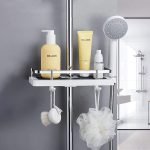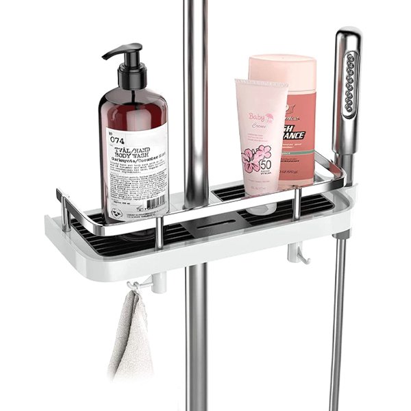 Cu mai multe rafturi reglabile și cârlige, Showy oferă spațiu amplu de depozitare pentru a menține obiectele esențiale de duș la îndemână. Spuneți adio să ajungeți după șampon de pe podea!