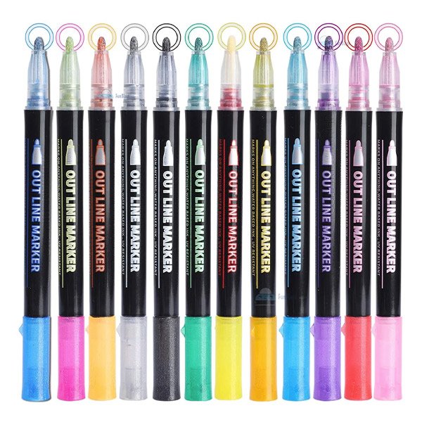 Pachetul contine: 12 markere argintii cu chenar de diferite culori