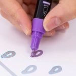 Puneți capacul pe marker și agitați-l pentru a amesteca cerneala. Apoi, apăsați penita în jos pe hârtie pentru un timp, până când cerneala curge spre vârf. Dacă nu apare nicio linie dublă, repetați pasul 1. Pentru cele mai bune rezultate, recapitulați stiloul injector (pen) imediat după utilizare și depozitați-l orizontal.