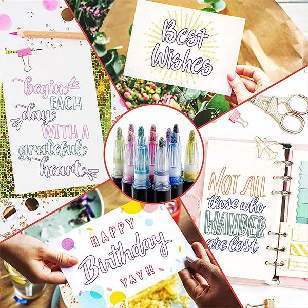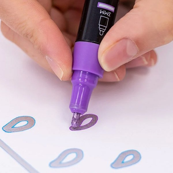 Markerele sunt grozave pentru a crea litere colorate pentru un plus de distracție atunci când scrieți și desenați. Când scriu, ei desenează o linie argintie care are un chenar de diferite culori. Sunt potrivite pentru tot felul de proiecte de bricolaj, pentru felicitări, graffiti, afișe, desen și decorarea jurnale și albume foto. Alegerea culorii argintii strălucitoare vă permite să creați modele și fonturi unice în cel mai scurt timp.