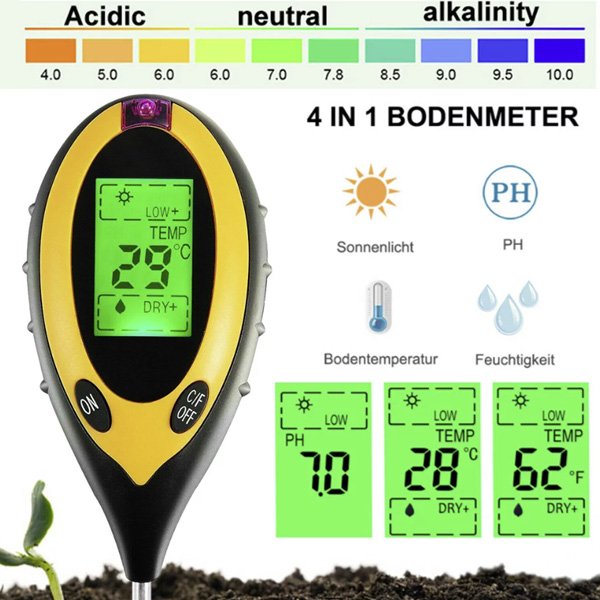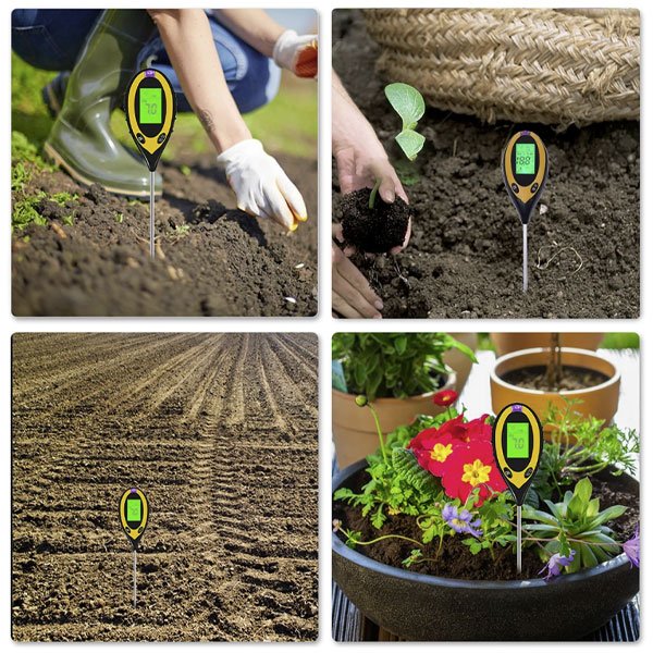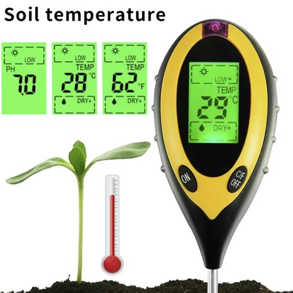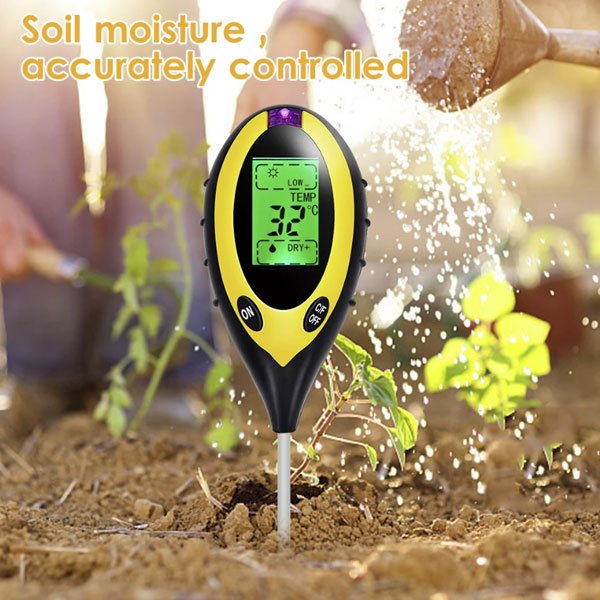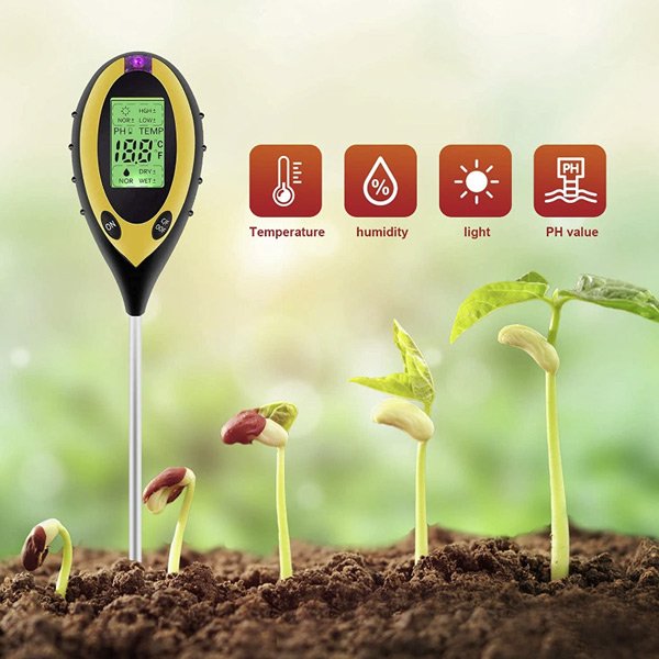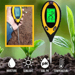 Vă prezentăm contorul nostru de sol 4 în 1. Funcțiile sale sunt foarte diverse, pot măsura umiditatea solului, temperatura, pH-ul solului și intensitatea luminii solare. Este cel mai bun instrument pentru monitorizarea sănătății și creșterii plantelor tale.