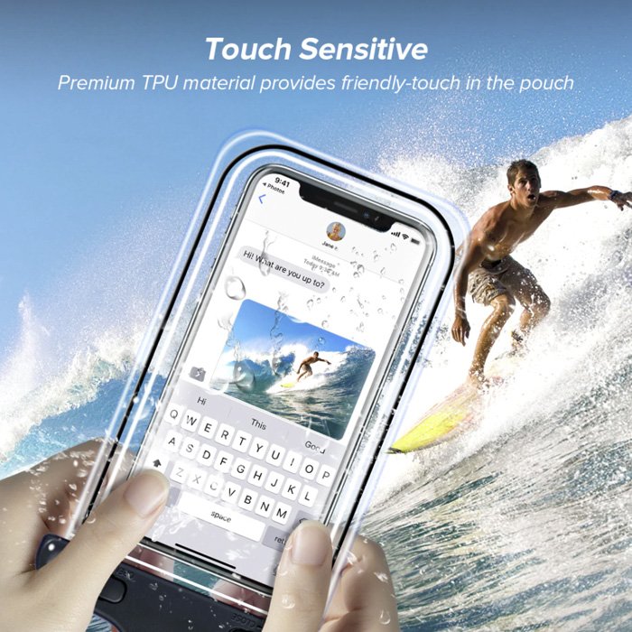 Acest carcasă rezistentă la apă este proiectată astfel încât să puteți utiliza telefonul pentru a efectua apeluri, a scrie mesaje sau a naviga fără griji, chiar și atunci când este închis în siguranță în carcasă.