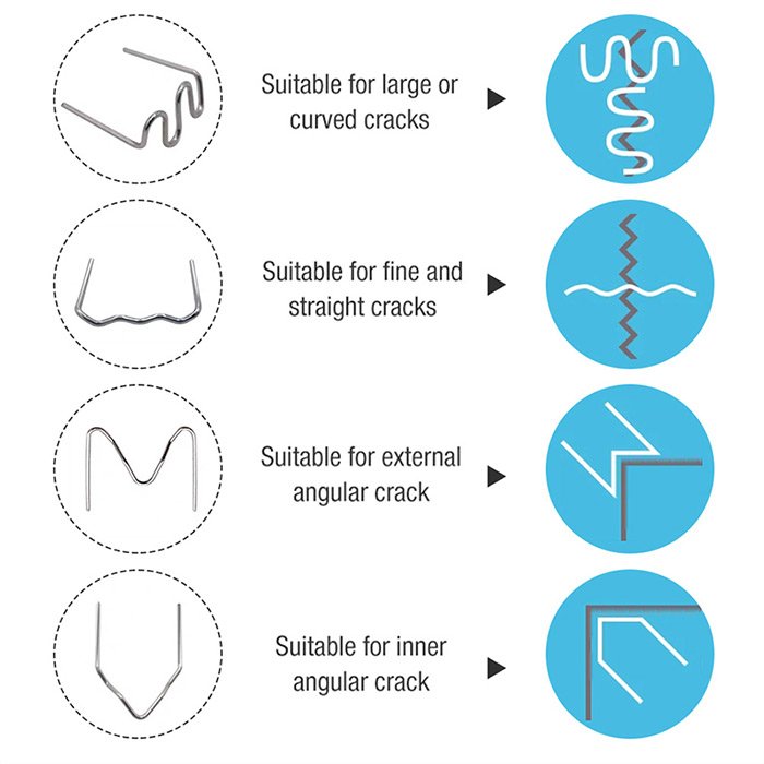 Selectați clemele de sudură potrivite în funcție de fisura din plastic, introduceți suportul din alamă și apăsați butonul de pornire. Sudorul se va încălzi în două secunde. Puneți clema în locul dorit și așteptați ca plasticul să se topească încet. Aveți grijă să nu perforați obiectul.